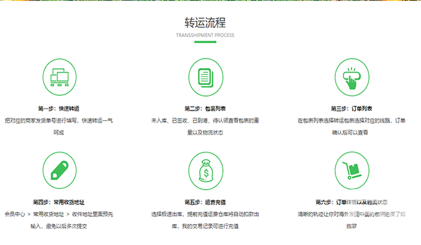 先來(lái)介紹一下它的轉(zhuǎn)運(yùn)流程,共分為6個(gè)步驟:快速轉(zhuǎn)運(yùn)、包裹列表、訂單列表、收貨地址、運(yùn)費(fèi)充值、訂單詳情及物流狀態(tài)。優(yōu)質(zhì)服務(wù)一條龍,運(yùn)費(fèi)比較實(shí)惠,客服專業(yè)、有耐心,在同行業(yè)中算做得很出色的了。
